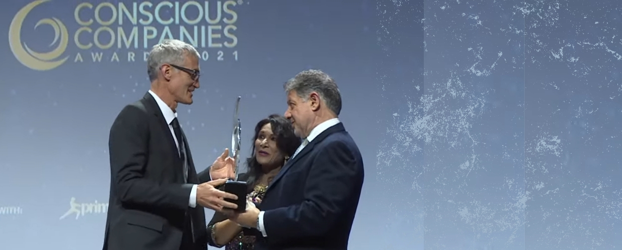 People and planet before profits were celebrated on Thursday night, 9 September 2021, when ten CEOs were recognised for their efforts at the Conscious Companies Award 2021 ceremony. A range of small companies and NPOs up against the “Goliaths” giant brands like AECI, Standard Bank and the winner, Nestlé ESAR. Of necessity a small (but sparkling) COVID compliant ceremony was held at the Venue in Melrose Arch in Johannesburg. A real time live-streamed prize-giving meant that interns, staffers and friends could participate virtually. When JumpCO CEO, Steve Mahony, received the first runners up trophy from Brenda Kali (Conscious Companies CEO) and Hoosain Karjieker (Mail & Guardian CEO), whoops of joy sounded around the country.
