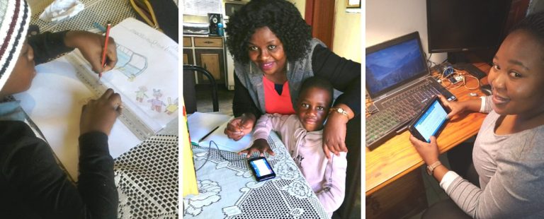 Bathabile, 6, his mom, Madintle Kubere, and NumberSense tutor Nthabiseng Ngoepe keep going under lockdown.